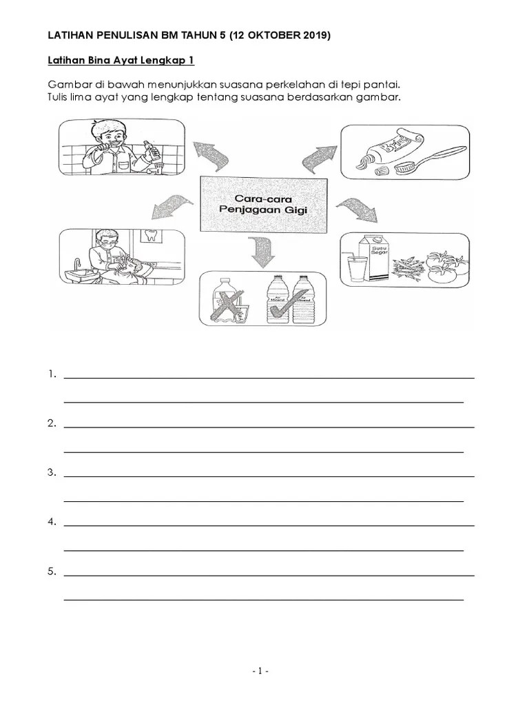 Tulis lima ayat yang lengkap tentang aktiviti yang terdapat di dalam gambar yang diberikan. Tulis lima ayat yang lengkap tentang aktiviti yang terdapat di dalam gambar yang diberikan. 99653906 panduan guru bahasa malaysia sk tahun 3 · za zakiah abd jalil ; Latihan bina ayat tahun 1 2 3 sheet music. Latihan bina ayat tahun 5. Latihan penulisan bm bina ayat mykssr com.